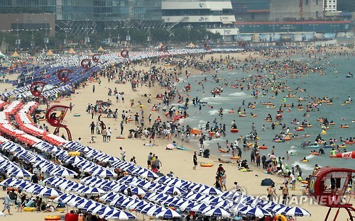 গতকাল বুসানের হিয়ন্দে বিচে ছিল প্রচন্ড ভিড়