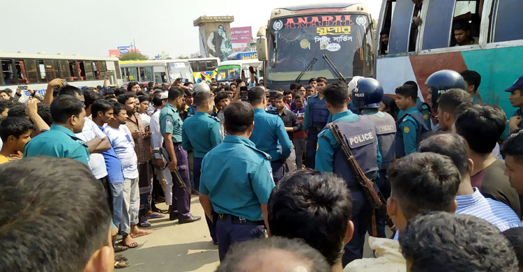 বেলা ১১টার দিকে ঢাকা-ময়মনসিংহ মহাসড়কের মাস্টারবাড়ি এলাকায় কিছু পরিবহন শ্রমিক বিভিন্ন যানবাহনের গতিরোধ করে তাদের উল্টো দিকে ফিরিয়ে দেন। তাদের মধ্যে পরিবহন শ্রমিক এমরাত হোসেন বলেন, কোনো নেতার নির্দশে নয়, আমরা নিজেরাই বাস চালানো থেকে বিরত রয়েছি। নতুন পরিবহন আইন বাতিল না করা পর্যন্ত আমাদের আন্দোলন চলবে।