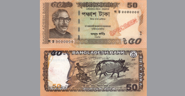 লালচে কমলা রঙে বঙ্গবন্ধুর ছবি ও গভর্নর ফজলে কবিরের স্বাক্ষর সম্বলিত ৫০ টাকা মূল্যমান ব্যাংক নোট বাজারে ছাড়বে কেন্দ্রীয় ব্যাংক। কেন্দ্রীয় ব্যাংকের এক বিজ্ঞপ্তিতে এ তথ্য জানানো হয়েছে।
