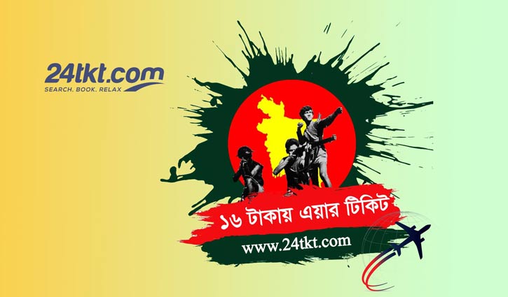 ১৬ ডিসেম্বর মহান বিজয় দিবসে মাত্র ১৬ টাকায় এয়ার টিকিট বিক্রির ঘোষণা দিয়েছে অনলাইন টিকিটিং এজেন্সি ২৪ টিকেট ডটকম (www.24tkt.com)। এক সংবাদ বিজ্ঞপ্তিতে প্রতিষ্ঠানটি জানিয়েছে, ১৬ ডিসেম্বর সারাদিন ২৪ ঘণ্টার জন্য এই অফারটি পাওয়া যাবে। শুধুমাত্র অভ্যন্তরীণ রুটে এয়ার টিকিট ক্রয়ের ক্ষেত্রে প্রতি ১৬ জনের একজন ১৬ টাকায় টিকিট কিনতে পারবেন। বিকাশ, ডিমানি, সিটি ব্যাংক, ব্র্যাক ব্যাংক, এনআরবি ব্যাংক, ইবিএল, লংকা-বাংলাসহ আরো কিছু আর্থিক প্রতিষ্ঠানের গ্রাহকরা ‘বিজয় উল্লাস অফার’টি উপভোগ করতে পারবেন।