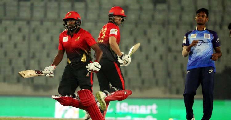 এর আগে মোহাম্মদ শাহজাদের ২৭ বলে ৬১ রানে অতিমানবীয় এক ইনিংসে ভর করে কুমিল্লা ভিক্টোরিয়ান্সের বিপক্ষে ৮ উইকেটে ১৮১ রানের বড় সংগ্রহ দাঁড় করায় রংপুর রেঞ্জার্স। টস জিতে ব্যাটিং বেছে নেয় রংপুর। শুরু থেকেই বিধ্বংসী চেহারায় হাজির শাহজাদ। মোহাম্মদ নাইমের সঙ্গে ২৬ বলের ওপেনিং জুটিতেই ৪৯ রান তুলে ফেলেন আফগান এই উইকেটরক্ষক ব্যাটসম্যান। ১০ বলে মাত্র ৮ রান করে রানআউটের ফাঁদে পড়েন নাইম।