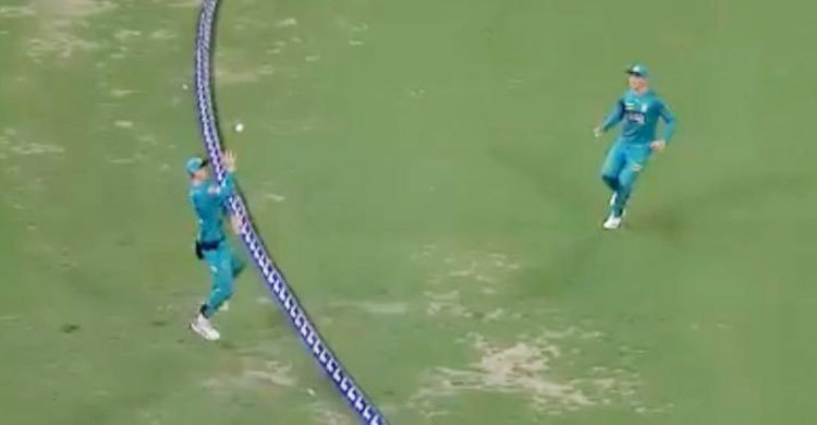 লং অন বাউন্ডারিতে সে ক্যাচ ধরেও ভারসাম্য রাখতে পারেননি ম্যাট রেন শ। সঙ্গেই ছিলেন টম ব্যান্টন। তার উদ্দেশ্যে বলটা ছুড়ে দেন রেন শ, চলে যান বাউন্ডারির বাইরে। ইদানীং ক্রিকেটে এমন বুদ্ধিমত্তায় ক্যাচ বানাতে দেখা যায় হরহামেশাই।