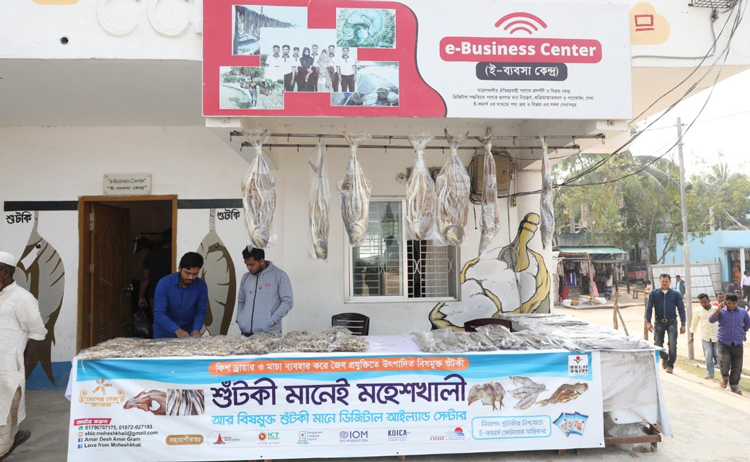 “দ্বীপের বাসিন্দা দিদারুল ইসলাম, মারুফা নাসরিন লোপা এবং রোমেনা আকতার। মূল ভুখন্ড থেকে বিচ্ছিন্ন এই দ্বীপে শুধু পড়ালেখা নিয়েই বসে থাকেননি এই তরুণ-তরুণীরা। পাশাপাশি যুক্ত হয়েছেন অনলাইন ব্যবসায়। নিজেদের গড়ে তুলেছেন উদীয়মান ‘উদ্যোক্তা’ হিসেবে। তারা মোট নয় জন মিলে গড়ে তুলেছেন অনলাইনে বিষমুক্ত শুটকি বিকিকিনির ব্যবসা প্রতিষ্টান ‘ই-বিজনেস সেন্টার’। এখান থেকেই ওই তরুণ-তরুণীরা মাঠ পর্যায় থেকে বিষমুক্ত শুটকি মাছ সংগ্রহ করে অনলাইনে দেশের নানাপ্রান্তে গ্রাহকদের কাছে পৌঁছে দিচ্ছেন। আর তাদের উৎপাদিত পণ্য বিক্রি করে দেশের অন্যতম বৃহৎ অনলাইন প্রতিষ্টান ‘দারাজ’। মহেশখালীতে বেড়াতে আসা পর্যটকেরাও তাদের কাছ থেকে শুটকি কিনে নিয়ে যাচ্ছে। এসবই সম্ভব হয়েছে দ্রুতগতির ইন্টারনেট গতির মাধ্যমে ই-সেবা দিয়ে মহেশখালীকে ইন্টারনেটের আওতায় নিয়ে আসার কারণে। ডিজিটাল আইল্যান্ড হিসেবে মহেশখালীকে পাইলট প্রকল্প হিসেবে গ্রহণ করে বিভিন্ন ক্ষেত্রে এই সেবা দেয়া হচ্ছে।
