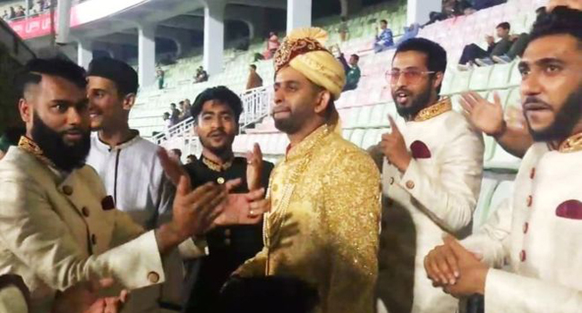 তিনি বলেন, ১১ বছর ধরে যুক্তরাষ্ট্রে থাকি। ফ্লোরিডায় বাংলাদেশ-ওয়েস্ট ইন্ডিজের টি-টোয়েন্টি ম্যাচ উপভোগ করেছি মাঠে বসে। আজকে বিয়ের দিনও বাংলাদেশের খেলা দেখার লোভ সামলাতে পারিনি। তাই এমন ঘটনা ঘটেছে। আসলে বাংলাদেশের খেলাটা মিস করতে চাইনি বলেই বরের পোশাকে মাঠে চলে গেলাম।