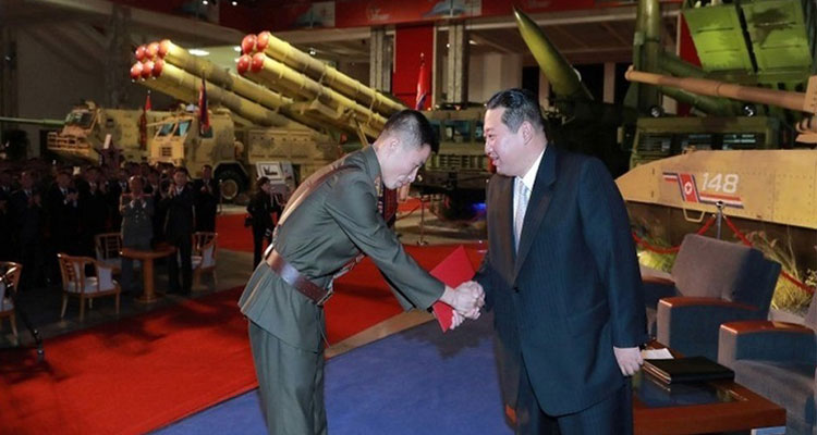 রাষ্ট্রীয় সংবাদমাধ্যমে প্রকাশিত ছবিতে দেখা গেছে, কিম প্রদর্শনীতে বিশাল আন্তঃমহাদেশীয় ব্যালাস্টিক ক্ষেপণাস্ত্র বা আইসিবিএমের সামনে দাঁড়িয়ে আছেন। এটি গত বছরের সামরিক প্যারেডে প্রথম প্রদর্শিত হয়। সম্প্রতি দেশটি নতুন হাইপারসনিক এবং উড়োজাহাজ ধ্বংসকারী ক্ষেপণাস্ত্র পরীক্ষা করেছে।
