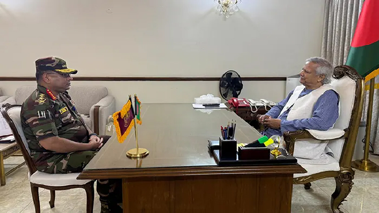 আন্তবাহিনী জনসংযোগ পরিদফতর (আইএসপিআর) জানায়, সেনাবাহিনী প্রধান জেনারেল ওয়াকার-উজ-জামান প্রধান উপদেষ্টার সঙ্গে সৌজন্য সাক্ষাৎকালে কুশলাদি বিনিময় করেন। পাশাপাশি সেনাবাহিনীর চলমান কার্যক্রম সম্পর্কে প্রধান উপদেষ্টাকে অবহিত করেন তিনি। এসময় প্রধান উপদেষ্টা সেনাবাহিনী প্রধানকে প্রয়োজনীয় দিকনির্দেশনা প্রদান করেন।