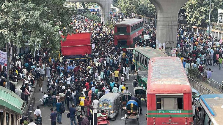 আসাদগেট এলাকা থেকে সাভার পরিবহনে চড়ে আসা একজন যাত্রী রাকিবুল হাসান জানান, তাকে বহন করা বাসটি মৎস্য ভবনের কাছাকাছি পৌঁছানোর পর যানজটের কারণে আকটা পড়ে। পরে তিনি জানতে পারেন প্রেসক্লাবের দিকে রাস্তা বন্ধ করে আন্দোলন চলছে। উপায় না পেয়ে গাড়ি থেকে নেমে তিনি হেঁটে রওনা দেন শুলিস্তানের উদ্দেশে।