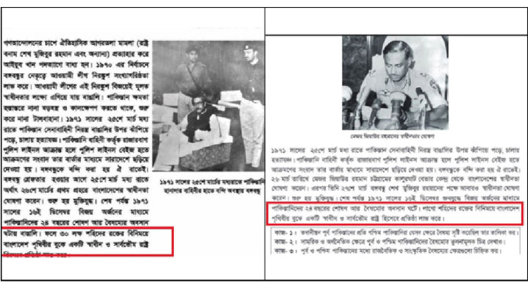 মাধ্যমিকের সপ্তম শ্রেণির ‘বাংলাদেশ ও বিশ্বপরিচয়’ বইয়ে মুক্তিযুদ্ধে শহীদের সংখ্যা জানাতে ‘লাখো’ লেখা হয়েছে। যদিও পাঠ্য বইটিতে আগে মুক্তিযুদ্ধে ৩০ লাখ শহীদের কথা উল্লেখ ছিল। এছাড়া মাধ্যমিকের ষষ্ঠ, নবম-দশম ও প্রাথমিকের তৃতীয় শ্রেণির বইয়ে মুক্তিযুদ্ধে শহীদের সংখ্যা কৌশলে এড়িয়ে যাওয়া হয়েছে।