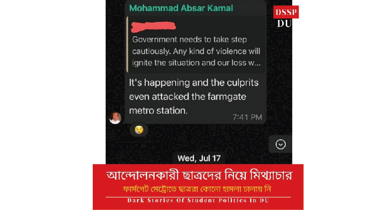 জুলাই গণঅভ্যুত্থানে যখন ছাত্রদের উপরে পুলিশ ও সরকারের পেটোয়া বাহিনী ছাত্রদের উপরে হামলে পড়ে, সেই সময়েও খোদ ছাত্রদের বিরুদ্ধেই মিথ্যাচারে সামিল হওয়ার অভিযোগ রয়েছে ভারপ্রাপ্ত পরিচালক আবছার কামালের বিরুদ্ধে।