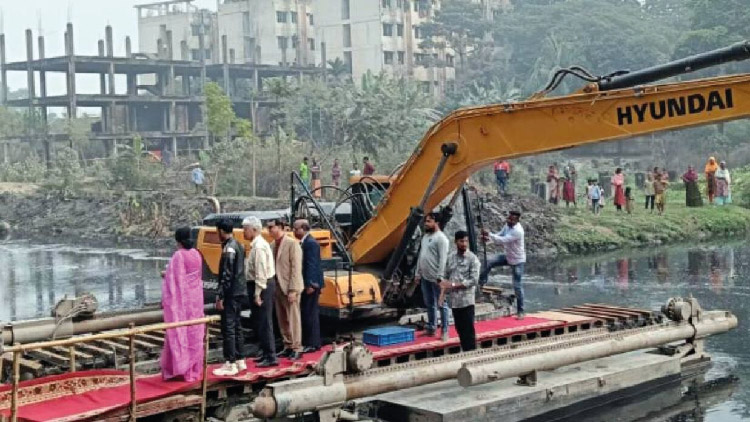 জলাবদ্ধতা নিরসনে মিরপুর-১৩ নম্বরে ঢাকা উত্তর ও দক্ষিণ সিটির ছয়টি খাল পুনর্খননের উদ্বোধন করেছেন অন্তর্বর্তী সরকারের তিন উপদেষ্টা। এসময় লাল গালিচায় হেঁটে খালে নামেন এবং ভাসমান স্কেভেটরে উঠে কাজের খননকাজের উদ্বোধন করেন তারা। রবিবার (২ ফেব্রুয়ারি) খাল খননের উদ্বোধন করেছেন তিন উপদেষ্টা।