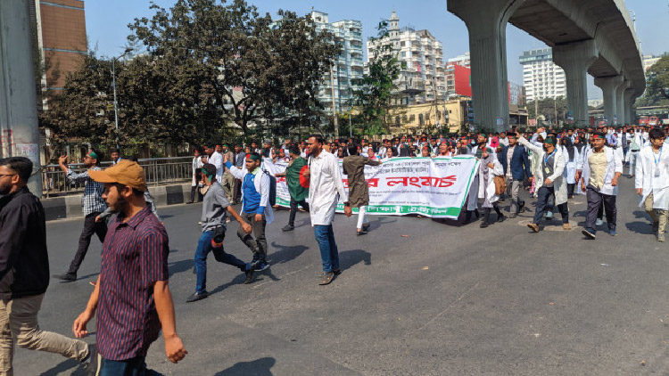 চার দফা দাবিতে আজ (৯ ফেব্রুয়ারি) শাহবাগে অবস্থান কর্মসূচি পালন করেছেন মেডিকেল অ্যাসিস্ট্যান্ট ট্রেনিং স্কুলের (ম্যাটস) শিক্ষার্থীরা।