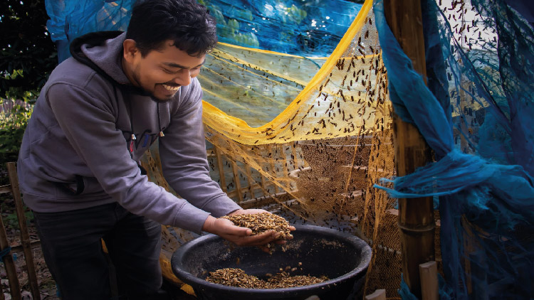 বাংলাদেশ কৃষি বিশ্ববিদ্যালয়ের অ্যাকুয়াকালচার বিভাগের সাবেক অধ্যাপক ড. আব্দুস সালাম ব্ল্যাক সোলজার ফ্লাই নিয়ে ১২ বছর ধরে গবেষণা করছেন।