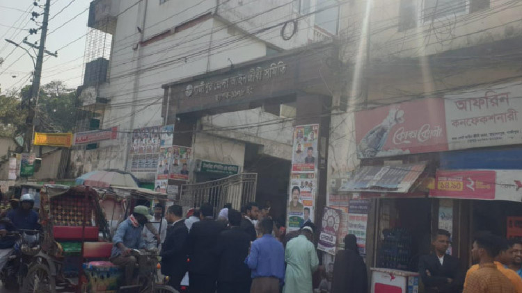 বুধবার সকাল সাড়ে ১১টার দিকে আদালতের পশ্চিম পাশে আইনজীবী সমিতির সভাপতি ও সাধারণ সম্পাদকের কার্যালয়ের সামনে এ ঘটনা ঘটে।