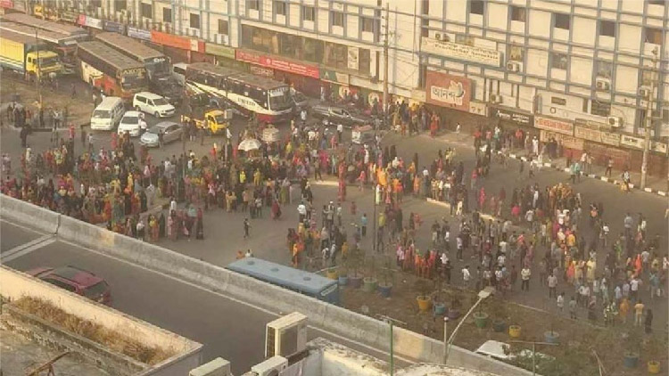 এ ঘটনার প্রতিবাদে গার্মেন্টসকর্মীরা সড়ক অবরোধ করছেন। ইনকামিং ও আউটগোইং উভয় দিকের রাস্তা বন্ধ করে দেওয়ায় যান চলাচলে চরম ভোগান্তি সৃষ্টি হয়েছে। এমনকি এলিভেটেড এক্সপ্রেসওয়েতেও তারা যানবাহন চলাচল বন্ধ করে দিয়েছেন।