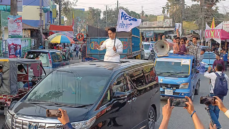 ঢাকা থেকে সৈয়দপুর পর্যন্ত গিয়েছেন উড়োজাহাজে চড়ে। বাকি ১০০ কিলোমিটার পথের মধ্যে অর্ধেকটা পাড়ি দিয়েছেন শতাধিক গাড়ির বহর নিয়ে। রাজনৈতিক দলের নেতৃত্ব পাওয়ার পর বাড়ি ফেরার পথে ‘শোডাউন’ দিয়েছেন পঞ্চগড়ের আটোয়ারীর ছেলে সারজিস আলম। গত মাসে নতুন দল জাতীয় নাগরিক পার্টির (এনসিপি) মুখ্য সংগঠক (উত্তরাঞ্চল) হয়েছেন তিনি।