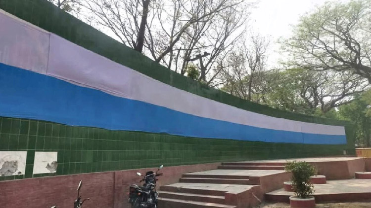 ২৬ মার্চ মুক্তিযুদ্ধের স্মৃতিমঞ্চের দেয়ালে কাপড় দিয়ে ঢেকে রাখে জেলা প্রশাসন। এর আগে গত ১৬ ডিসেম্বর বিজয় দিবসেও একই রকম ঘটনা ঘটায় জেলা প্রশাসন। দ্বিতীয়বারের মতো এ ঘটনায় তীব্র প্রতিবাদ ও নিন্দা জানিয়েছে সংগঠন দুটি।