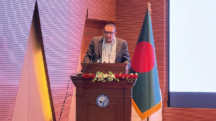 তিনি বলেন, এই বিক্ষোভের মাধ্যমে বাংলাদেশের জনগণ ফিলিস্তিন এবং বিশ্বকে বেশ কয়েকটি বার্তা পাঠিয়েছে। ফিলিস্তিনকে, বিশেষ করে গাজার জনগণের কাছে এই বার্তা দেওয়া হয়েছে যে তোমরা একা নও। আমরা তোমাদের সঙ্গে আছি। তোমাদের যন্ত্রণা আমরা অনুভব করছি। আমরা তোমাদের পরিত্যাগ করব না। তোমাদের ভূমি এবং স্বাধীনতা ফিরে না পাওয়া পর্যন্ত আমরা তোমাদের সঙ্গে থাকব।