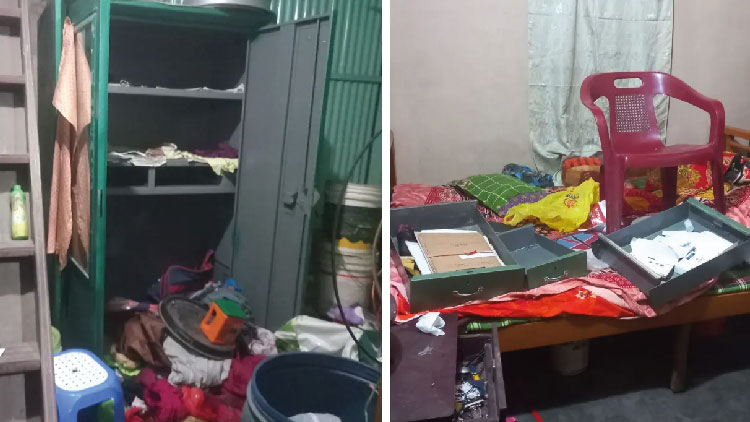 পরে তারা ওই দম্পতির গলায় ধারালো ছুরি ধরে চিৎকার করতে নিষেধ করেন এবং ভয়ভীতি দেখান। এক পর্যায়ে বিছানার চাদর দিয়ে দুজনের মুখ ঢেকে দেওয়া হয়। পরে ঘরে থাকা দুটি স্টিলের আলমারি, ওয়্যারড্রব, কাঠের আলমারি ভেঙে নগদ ১ লাখ টাকাসহ প্রায় ১০ ভরি ওজনের বিভিন্ন ধরনের সোনার অলংকার, ১টি মোবাইল ফোন লুট করে রাত ৩টার দিকে তারা চলে যান।