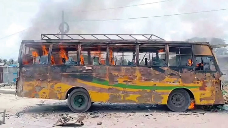 পুলিশ সূত্রে জানা গেছে, মঙ্গলবার দুপুরে খুলনা থেকে ছেড়ে আসা বরিশালগামী নয়ন পরিবহন সাতপাড় বাসস্ট্যান্ডে দাঁড়িয়ে যাত্রী তুলছিল। এ সময় টেকেরহাটগামী একটি লোকাল বাস পিছন থেকে নয়ন পরিবহনকে ধাক্কা দেয়। এ সময় দুই বাসের মধ্যে পড়ে চাপা পড়েন এক মোটরসাইকেলচালক। এতে ঘটনাস্থলেই তার মৃত্যু হয়। পরে স্থানীয় জনতা বাসটিতে আগুন ধরিয়ে দেয়। পরে ফায়ার সার্ভিস ও স্থানীয়দের চেষ্টায় আগুন নিয়ন্ত্রণে আসে।
