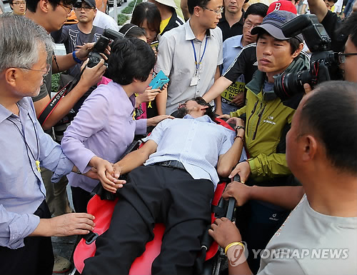 দক্ষিণ কোরিয়ার মর্মান্তিক ফেরি ডুবির ঘটনায় প্রাণ হারানো এক স্কুল শিক্ষার্থীর অনশনরত বাবাকে হাসপাতালে ভর্তি করা হয়েছে। ওই ফেরি ডুবির ঘটনায় নিরপেক্ষ তদন্তের দাবিতে টানা ৪০ দিন অনশন চালিয়ে যাওয়ায় অস্স্থু হয়ে পড়ায় তাকে হাসপাতালে ভর্তি করা হয়।