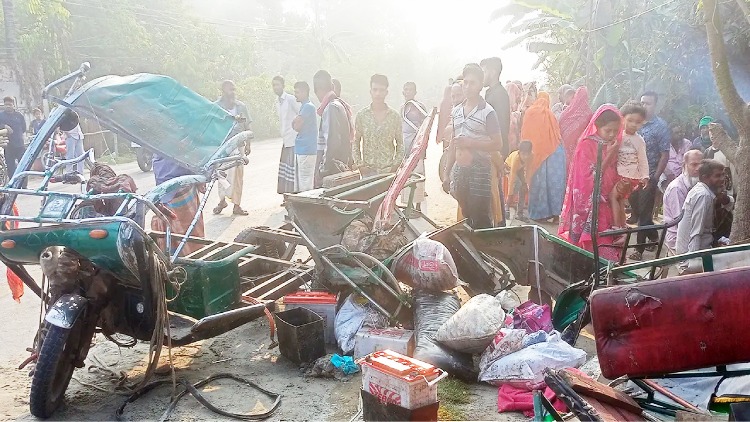 ট্রাকচাপায় দুমড়েমুচড়ে গেছে অটোরিকশা। ছবি: সংগৃহীত