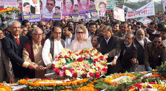 সকাল সোয়া ৯টার দিকে দলের ভারপ্রাপ্ত মহাসচিব মির্জা ফখরুল ইসলাম আলমগীর স্মৃতিসৌধে যান। দলীয় প্রধানের জন্য নেতা-কর্মীরা ব্যানার, ফেস্টুন, ফুল নিয়ে অপেক্ষা করেন।