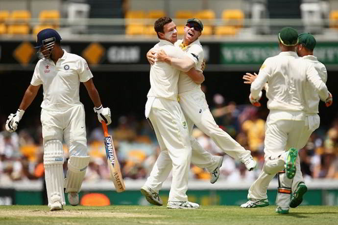 গ্যাবার আগুনে পিচে কখনো টেস্ট জেতেনি ভারত। পেস বোলারদের প্রিয় এ ভেন্যু বধ্যভূমিই হয়ে থেকেছে তাদের জন্য। তবে প্রথম ইনিংসে চারশোর বেশি রান করে জয়ের স্বপ্ন দেখতে থাকে ধোনিবাহিনী। কিন্তু দ্বিতীয় ইনিংসে অভাবনীয় ব্যাটিং বিপর্যয়ে ৪ দিনের মধ্যেই হারের স্বাদ পেল ভারত। ৬১ রানে ৪ উইকেট নিয়ে ভারতীয়দের মূল হন্তারক পেসার জনসন। এদিকে ব্রিসবেনে গত ২৬ বছরে কোনো টেস্টে না হারার রেকর্ড ধরে রাখল অসিরা।