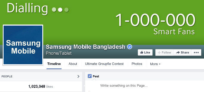 সোস্যাল মিডিয়ায় ১০ লাখ ফ্যান নিয়ে ২০১৪ সাল শেষ করল স্যামসাং মোবাইল বাংলাদেশ। এ উপলক্ষে প্রতিষ্ঠানটি ফেসবুক ফ্যানদের জন্য এক প্রতিযোগিতা আয়োজন করে। এ অর্জনের মাধ্যমে স্যামসাং মোবাইল বাংলাদেশ সোস্যাল মিডিয়ায় অনুসরণ করা দেশের অন্যতম শীর্ষ মোবাইল ব্র্যান্ড হিসেবে প্রতিষ্ঠিত হয়েছে।