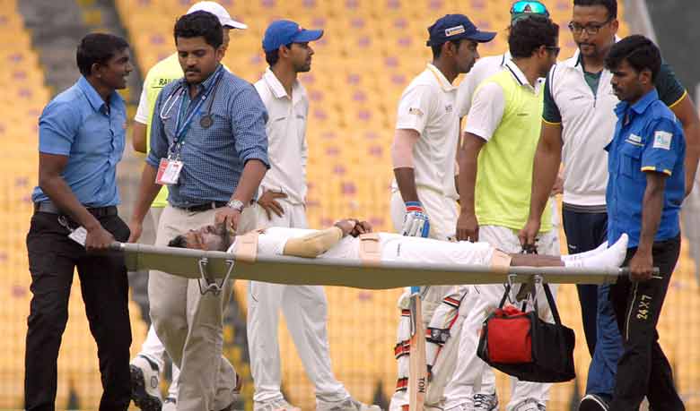 মঙ্গলবার চেন্নাইতে রেলওয়ের বিপক্ষে ব্যাট করছিল তামিলনাড়ু। প্রথম ইনিংসের ৬৩তম ওভারে বল করতে আসেন রেলওয়ের আশিষ যাদব। তার বলে সজোরে ব্যাট চালান তামিলনাড়ুর ব্যাটসম্যান রাজগোপাল সতীষ। ফরোয়ার্ড শর্ট লেগে ফিল্ডিং করছিলেন রেলওয়ের রোহান বোসলে। বলটি সজোরে তার ঘাড়ে আঘাত হানে। বসে পড়েন রোহান। সঙ্গে সঙ্গে স্ট্রেচারে করে তাকে অ্যাম্বুলেন্সে তোলা হয়। ভর্তি করা হয় অ্যাপোলো হাসপাতালে। তবে রোহান শঙ্কামুক্ত। মারাত্মক কোনো আঘাত পাননি তিনি।