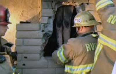 চিৎকার শুনে ছুটে আসেন তার প্রাক্তন স্বামী। কিন্তু তিনিও তাকে উদ্ধার করতে ব্যর্থ হয়ে ফায়ার সার্ভিস কর্মীদের খবর দেন। তারা এসে চিমনির ভেতর থেকে নগ্ন অবস্থায় ওই নারীকে উদ্ধার করেন।