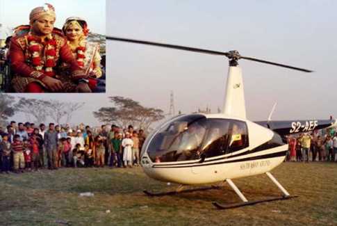নারায়ণগঞ্জের রূপগঞ্জের গোলাকান্দাইল ইউনিয়নের দাড়িকান্দি এলাকার ইউনিয়ন আওয়ামীলীগের সাবেক সভাপতি মৃত আব্দুল মান্নান মেম্বারের ছেলে ফারুক হোসেন। ২ লাখ ৫০ হাজার টাকায় ভাড়া করা সাউথ এশিয়ান এয়ারওয়েজের (এস টু-এ ই এফ) একটি হেলিকাপ্টারে চড়ে বিকাল ৩টায় বর ফারুক হোসেন হেলিকাপ্টার যোগে আসে সিদ্ধিরগঞ্জের বাতানপাড়ার কনের পিত্রালয়ে। হেলিকপ্টারটি নামে একটি মাঠের মধ্যে। এসময় হঠাৎ মাঠের মধ্যে হেলিকাপ্টার নামতে দেখে অবাক হন এলাকাবাসী। হেলিকপ্টারটি গ্রামে নামার সঙ্গে সঙ্গে দেখতে ছুটে আসেন শিশু, নর-নারীসহ বিভিন্ন বয়সের লোকজন। এক কান দু’কান করে হেলিকাপ্টার আসার খবরে ছড়িয়ে পড়ে চারদিকে। উৎসুক জনতার ভিড়ও বাড়তে থাকে। তাদের অনেকেই হেলিকাপ্টারের সঙ্গে দাঁড়িয়ে ছবি তুলতেও দেখা যায়।