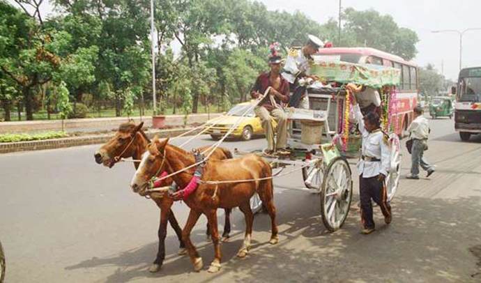 ঘোড়ার গাড়ি রাজকীয় ঐতিহ্যের অংশ। ভারতবর্ষে ইংরেজ শাসন আমলে ঘোড়ার গাড়ির প্রচলন শুরু হয়। ঢাকাতেও ঘোড়ার গাড়ি সে সময়ই আসে। ইংরেজদের দেখাদেখি স্থানীয় অভিজাত শ্রেণির মানুষও এই সুবিধা নেয়। এক সময় তা চলে আসে গ্রামগঞ্জের সাধারণ মানুষের মধ্যে। রাজকীয় বাহন ঘোড়ার গাড়ি এ দেশের ঐতিহ্যে ১৫০ বছরের বেশি সময় পার করেছে। বর্তমানে এটি হারিয়ে যেতে বসেছে। কেবল পুরান ঢাকায় স্বল্প পরিসরে আজো টিকে আছে ঐতিহ্যবাহী এ বাহনটি।