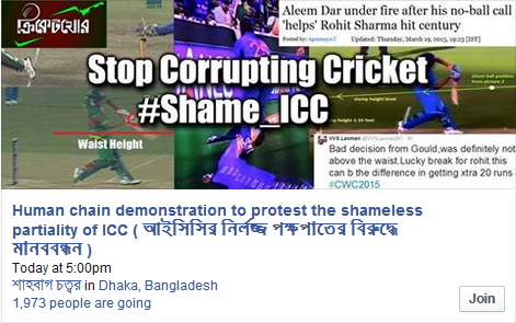 মানববন্ধনের জন্য আয়োজিত একটি ফেসবুক ইভেন্টে আয়োজকরা লিখেন, “আম্পায়ারদেরও ভুল হয়। এবং বলার অপেক্ষা রাখে না, ভুলগুলোর বেশিরভাগই বাংলাদেশের বিপক্ষে হয়। কিন্তু আজকে যা হলো, এগুলো ভুল নয়; স্রেফ দিনে-দুপুরে ডাকাতি!”