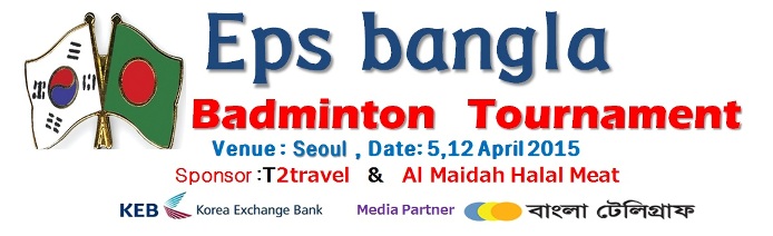 সিউলের দোংদেমুনে আজ শুরু হয়ে কোরিয়া প্রবাসীদের নিয়ে আয়োজন ইপিএস বাংলা ব্যাটমিন্টন টুর্নামেন্ট। ফেসবুক ভিত্তিক গ্রুপ ইপিএস বাংলা এই টুর্নামেন্টের আয়োজন করেছে। আজ দুপুর ১২টায় খেলা শুরু হয়ে চলবে বিকাল ৪টা পর্যন্ত। ১৬ জন খেলোয়াড মূল পর্বে অংশ নিচ্ছেন। আগামী ১২ এপ্রিল টুর্ণামেন্টের ফাইনাল অনুষ্টিত হবে।