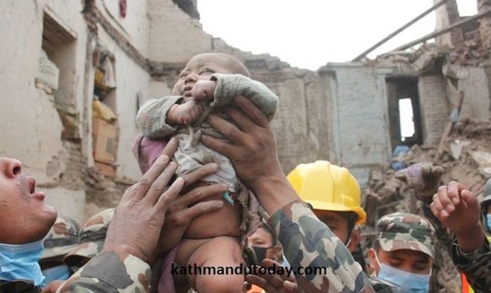 ঘটনাটি ঘটেছে নেপালের ভক্তপুর শহরে। শনিবারের ভূমিকম্পে সেখানে ধসে পড়ে দালান। উদ্ধারকর্মীরা একে একে বের করছিলেন লাশ। সেখানে উদ্ধার কাজ করছিলেন নেপালের সেনা সদস্যরাও। একটি ধসে পড়া ভবনের ভেতরে ঢুকে সন্ধান করছিলেন মানুষের। হঠাৎই চার মাস বয়সী একটি শিশুর দেহ পড়ে থাকতে দেখেন তারা। একপর্যায়ে ভেতরে গিয়ে উদ্ধার করে নিয়ে আসেন। শিশুটিকে বের করে এনে একপাশে রেখে দেন। ভেবেছিলেন মৃতের মিছিলে যোগ হলো আরো একটি মানব সন্তান।