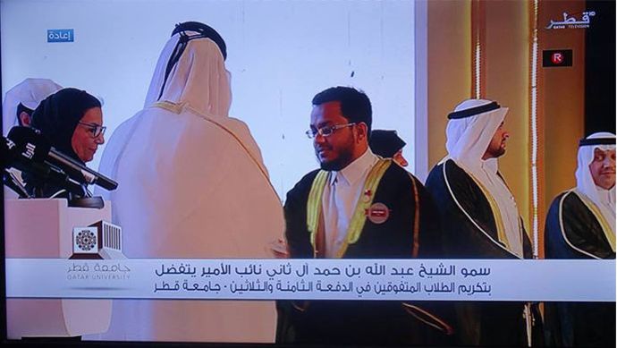এসময় দাওয়া ও সাংবাদিকতা বিষয়ে বাংলাদেশি তামীম রায়হানসহ পুরো বিশ্ববিদ্যালয় থেকে সর্বোচ্চ নম্বর পাওয়া ৩৩ জন মেধাবী ছাত্রের হাতে তিনি স্বর্ণপদক তুলে দেন। কাতারের প্রধানমন্ত্রী শেখ আব্দুল্লাহ বিন নাছের বিন খলিফা আলথানি এবং মন্ত্রী পরিষদের অন্যান্য সদস্যবর্গ এসময় উপস্থিত ছিলেন।