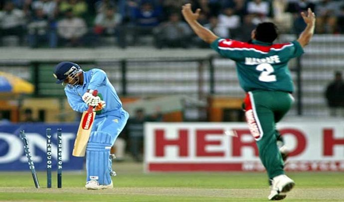 ওই ম্যাচে খেলেননি টেন্ডুলকার। তার পরিবর্তে খেলেছিলেন শেভাগ। কিন্তু ব্যাট হাতে রানের খাতাই খুলতে পারেননি তিনি। মাশরাফির ২ উইকেটের পাশাপাশি তাপস বৈশ্য, খালেদ মাহমুদ ও মোহাম্মদ রফিক দুটি করে উইকেট নেন।