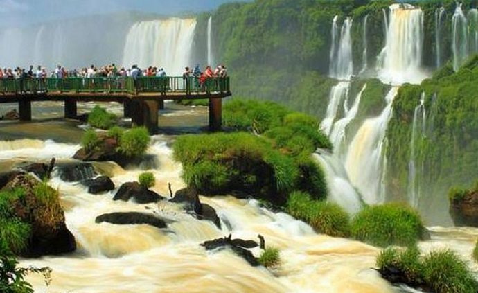 ব্রাজিল ও আর্জেন্টিনা সীমান্তের ইগুয়াজু জলপ্রপাত। ইগুয়াজু নদীর ওপর মোট ২৭৫টি জলপ্রপাত রয়েছে।