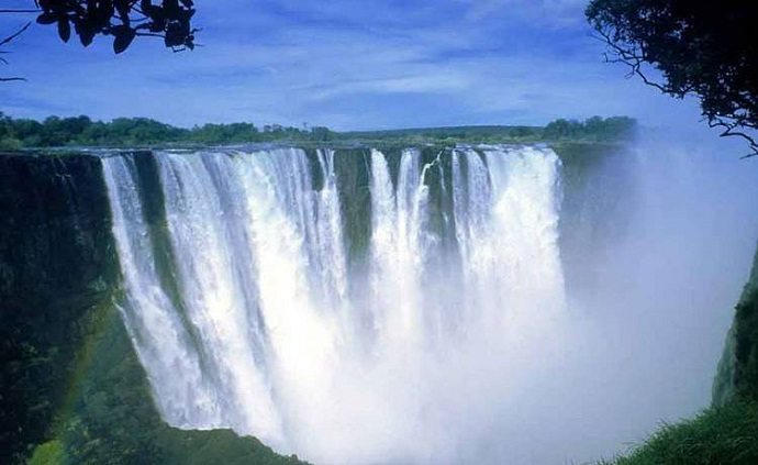 জিম্বাবুয়ে ও জাম্বিয়া সীমান্তের ভিক্টোরিয়া জলপ্রপাত। স্থানীয় নাম মোসি-ওয়া-তুনা। বিশ্বের সবচেয়ে বড় জলপ্রপাত।