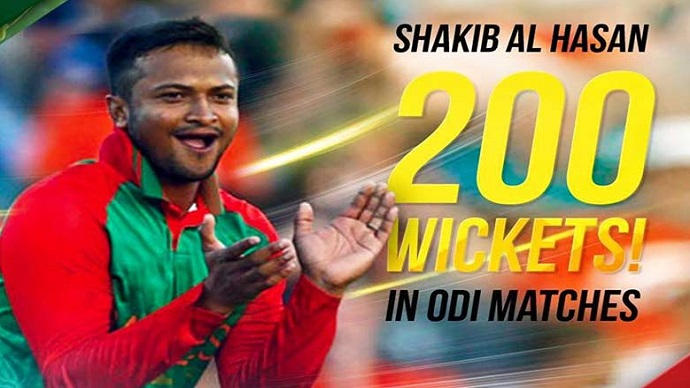 নিজের ক্রিকেটীয় ক্যারিয়ারকে আরো এক ধাপ ওপরে নিয়ে গেলেন সাকিব আল হাসান। ইতিহাসের সপ্তম ক্রিকেটার হিসেবে ওয়ানডেতে দুইশ উইকেট ও ৪ হাজার রানের মাইলফলক স্পর্শ করলেন তিনি। একই সঙ্গে দ্বিতীয় বাংলাদেশি বোলার হিসেবে ওয়ানডেতে দুইশ উইকেট নেওয়ার অনন্য কীর্তি গড়লেন বিশ্বসেরা এই অলরাউন্ডার।