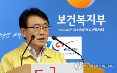 সেজংয়ে নিয়মিত সংবাদ সম্মেলনে বক্তব্য রাখছেন কোরিয়ার সেন্ট্রাল মার্স টাস্কফোর্সের প্রধান কেওন দক ছল। ছবিঃ ইয়নহাপ নিউজ।