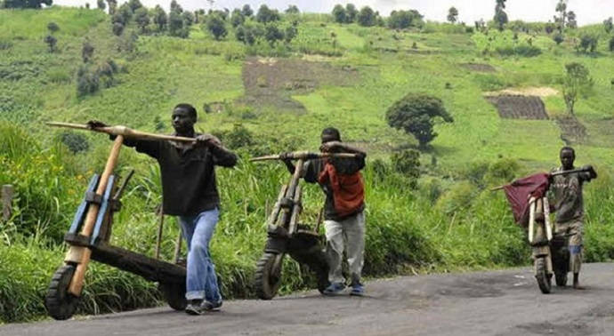দু’টি ছোট ছোট চাকা, একটি হাতল, মালপত্র রাখার অনেকটা জায়গা, সব কিছুই কাঠের। এই হল সুকুদু। এই অসাধারণ যানটি বিশেষ করে পূর্ব কঙ্গোয় বানানো এবং ব্যবহার করা হয়। সুকুদু স্রেফ ঠেলে চালানো হয়, তার ইঞ্জিনের দরকার পড়ে না।