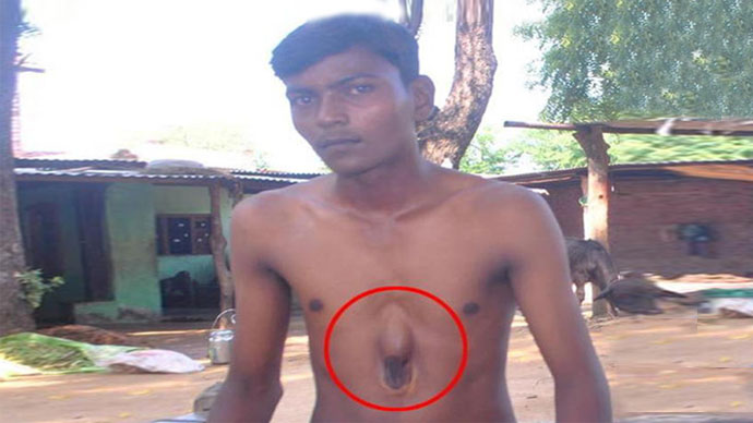 আহমেদাবাদ সংলগ্ন একটি গ্রামের অর্পিত। জামা খুললেই দেখা যায়, বুকের মাঝ বরাবর ঝুলছে হৃত্পিণ্ড!