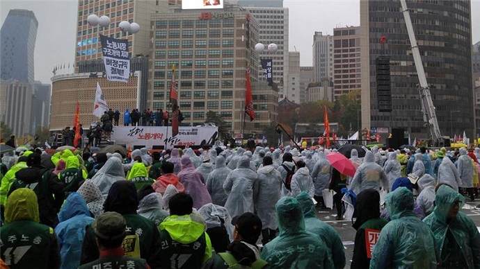 সম্প্রতি শ্রমবাজারে নমনীয়তা আনতে প্রেসিডেন্ট পার্ক গিউন শ্রমিক ছাঁটাইয়ের বিষয়ে মালিকদের ক্ষমতা বাড়ানোর পরিকল্পনা প্রকাশ করেন। প্রেসিডেন্টের এই পরিকল্পনার বিরুদ্ধে প্রতিবাদ জানাতেই বিক্ষোভে অংশ নেয় ট্রেড ইউনিয়নগুলো। এ ছাড়া দেশটির স্কুলগুলোতে ইতিহাসের নতুন পাঠ্যবইয়ে সাবেক স্বৈরশাসকদের অপরাধ ঢাকার চেষ্টার অভিযোগে অন্য গ্রুপগুলো পৃথক বিক্ষোভ করেছে।