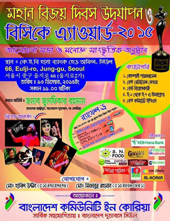তিনি জানান পরবর্তীতে কোরিয়ায় শিক্ষা, গবেষণা, ব্যবসা, সামাজিক, সাংস্কৃতিক কার্যক্রমে যারা অবদান রাখছে তাদেরকেও অ্যাওয়ার্ড এর মাধ্যমে সম্মানিত করতে চায় বিসিকে।