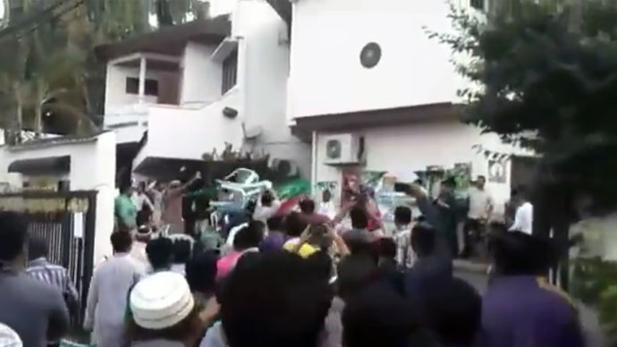 ঘটনার আকস্মিকতায় ভয় পেয়ে অতিথি ও কর্মকর্তারা দৌঁড়ে পালান। অনুষ্ঠানস্থলের চেয়ার দিয়ে একদল অন্যদলের ওপর হামলা করেন। দূতাবাসের জানালাগুলো ভাঙ্গা হয়। এমনকি দূতাবাস প্রাঙ্গনের বাইরে মূল সড়কেও ছড়িয়ে পড়েন দাঙ্গাবাজেরা। রাস্তার ওপর ফেলে কয়েকজন মিলে মারতে দেখা যায় অন্য দলের সমর্থকদের।