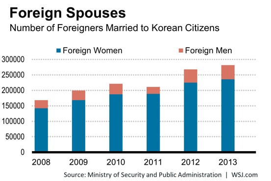 বিদেশীদের সাথে কোরিয়ান নাগরিকদের বিবাহের পরিমাণ বাড়ছে