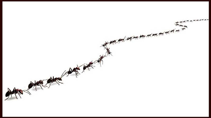 পিঁপড়েরা সব সময় সারি বেঁধে চলে। একটু খেয়াল করলে দেখা যাবে, চলমান এক সারির পিপড়ার সামনের পিঁপড়াটি যে দিক ছুটে চলছে অন্যরাও তাকে নির্ভুলভাবে অনুসরণ করছে। হঠাৎ যদি পিঁপড়ের লাইনের ভেতর দিয়ে কাঠি কিংবা হাত দিয়ে প্রতিবন্ধকতা তৈরি করেন, তবে দেখবেন পেছনের পিঁপড়েগুলো দিশেহারা হয়ে গেছে। কিছুক্ষণ এলোমেলোভাবে ঘুরবে ওরা। তারপর হয়তো আবার লাইন করে চলবে। কিন্তু নতুনভাবে লাইন সেট করতে বেশ কিছুক্ষণ সময় নেয় ওরা। লাইন ভাঙার পর সামনের সাথীদের দেখতে পারছিল পিঁপড়েরা, তবুও কেন এই সাময়িক বিশৃঙ্খলা। দেখতে না পেলে অবশ্য কথা ছিল।