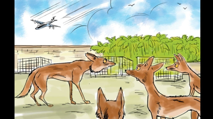কলাগাছের ওই জঙ্গল কেটে ফেললেই তো হয়! অনিলবাবু বলেন, ‘‘তাতে আরও বেশি করে শেয়ালদের রানওয়েতে চলে আসার আশঙ্কা।’’ বন দফতরের একটি সূত্র জানাচ্ছে, বিমানবন্দরের ভিতরে থাকা পূর্ণবয়স্ক শেয়াল ধরার পাশাপাশি তাদের বংশবৃদ্ধিও ঠেকাতে হবে। দেখতে হবে খাবারের খোঁজে বাইরে থেকেও শেয়ালরা যাতে ঢুকে না পড়ে।