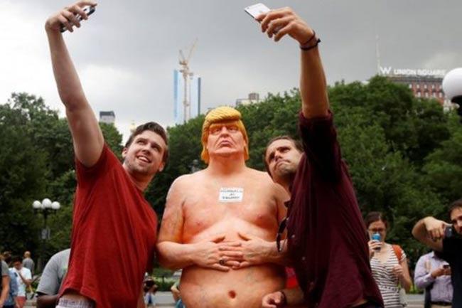যুক্তরাষ্ট্রের নিউইয়র্ক শহরের পার্কে চলতে গিয়ে হঠাৎ বিষম খেতে হলো অনেক পথচারীকে। পার্কের চত্বরে দাঁড়িয়ে আছেন রিপাবলিকান পার্টির প্রেসিডেন্ট প্রার্থী ডোনাল্ড ট্রাম্প। পুরো নগ্ন।